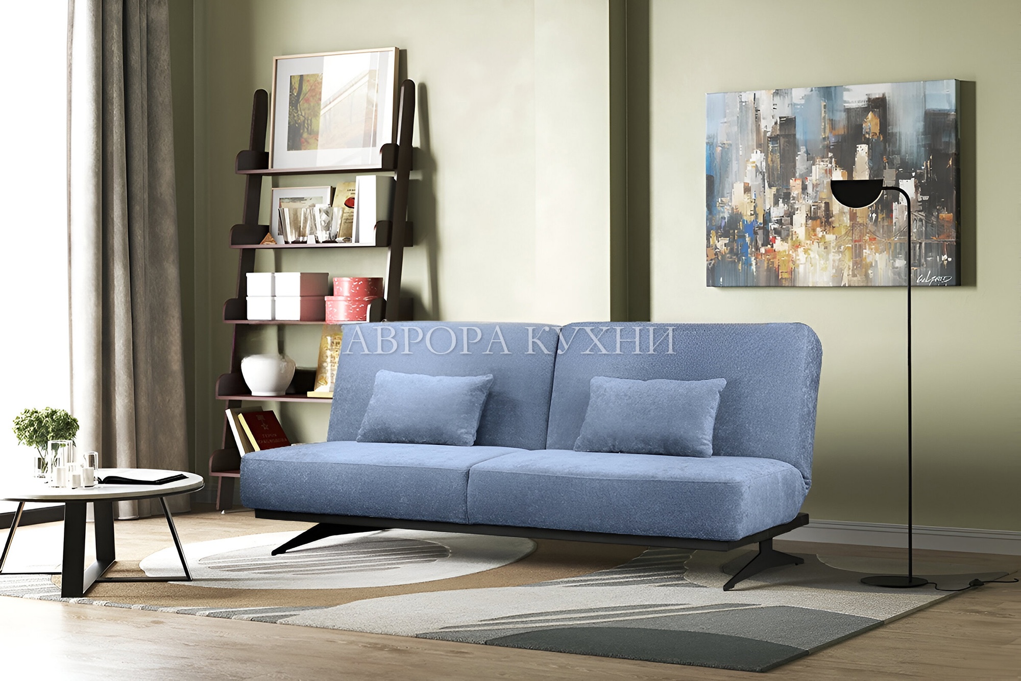 - Прямой диван, две декоративные подушки.