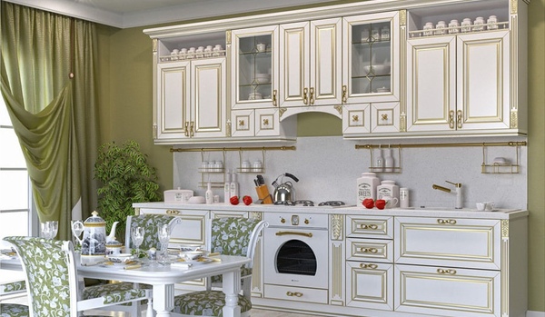 - Уникальность. Выполненный таким образом дизайн кухни имеет оригинальный вид. Чтобы сделать интерьер как можно более интересным, стоит использовать серебряную, золотую, белую, зеленую, черную или желтую патину.