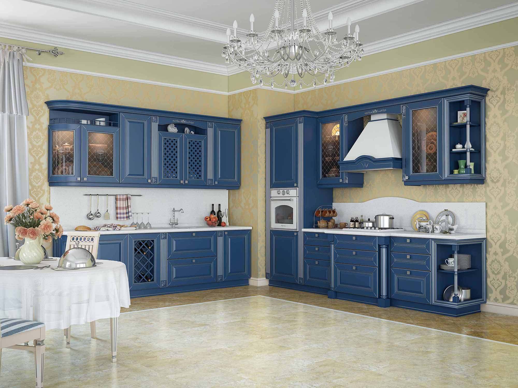 - При создании дизайн-проекта можно составить любую комбинацию цветов, декоров, фрезеровок, а так же дополнить всеми необходимыми комплектующими и бытовой техникой.